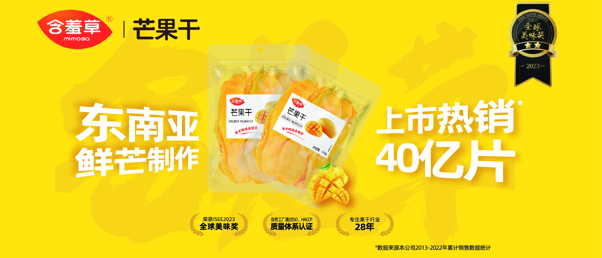 平均溫度27℃,全年日照超1500h,東南亞熱帶季風氣候生長(核小肉厚、外觀優美、果肉滑嫩香甜、纖維少、營養豐富、高產抗病)是最適合做芒果干的品種之一